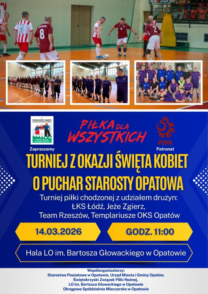 Templariusze OKS Opatów zapraszają na wyjątkowe wydarzenie sportowe. Już jutro hala LO im. Bartosza Głowackiego w Opatowie stanie się miejscem rywalizacji drużyn w turnieju piłki chodzonej o Puchar Starosty Opatowskiego.