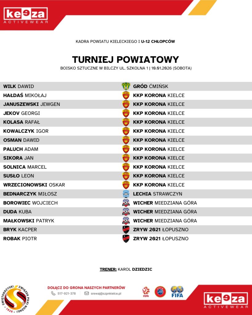Strona główna>Aktualności>Powołania do kadry powiatu kieleckiego I U-12 (chłopcy)