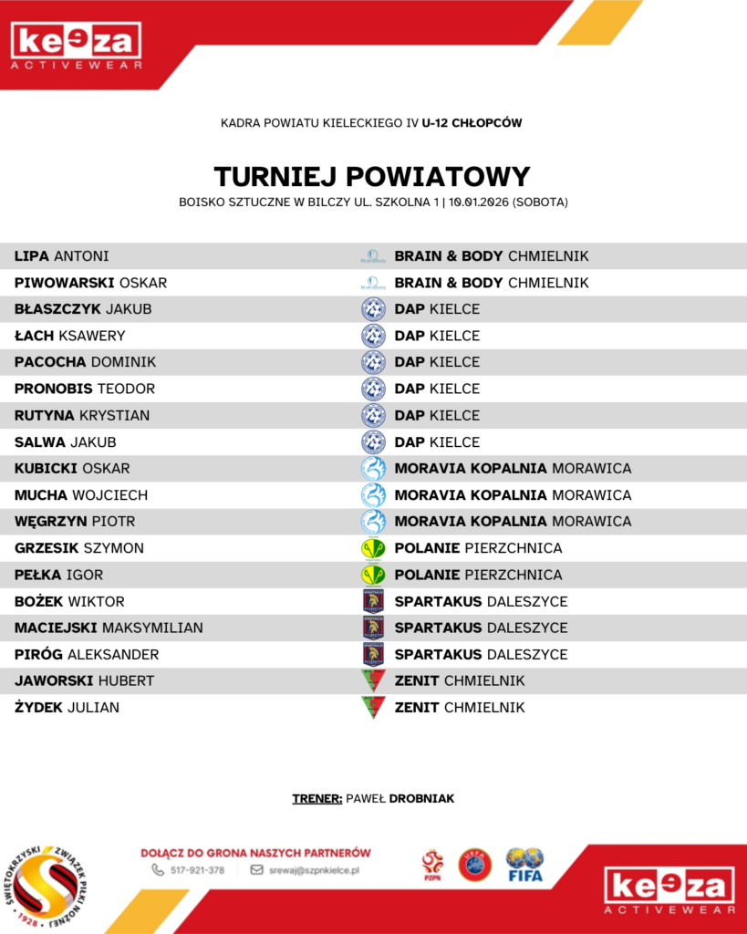 Powołania do kadry powiatu kieleckiego IV U-12 (chłopcy)