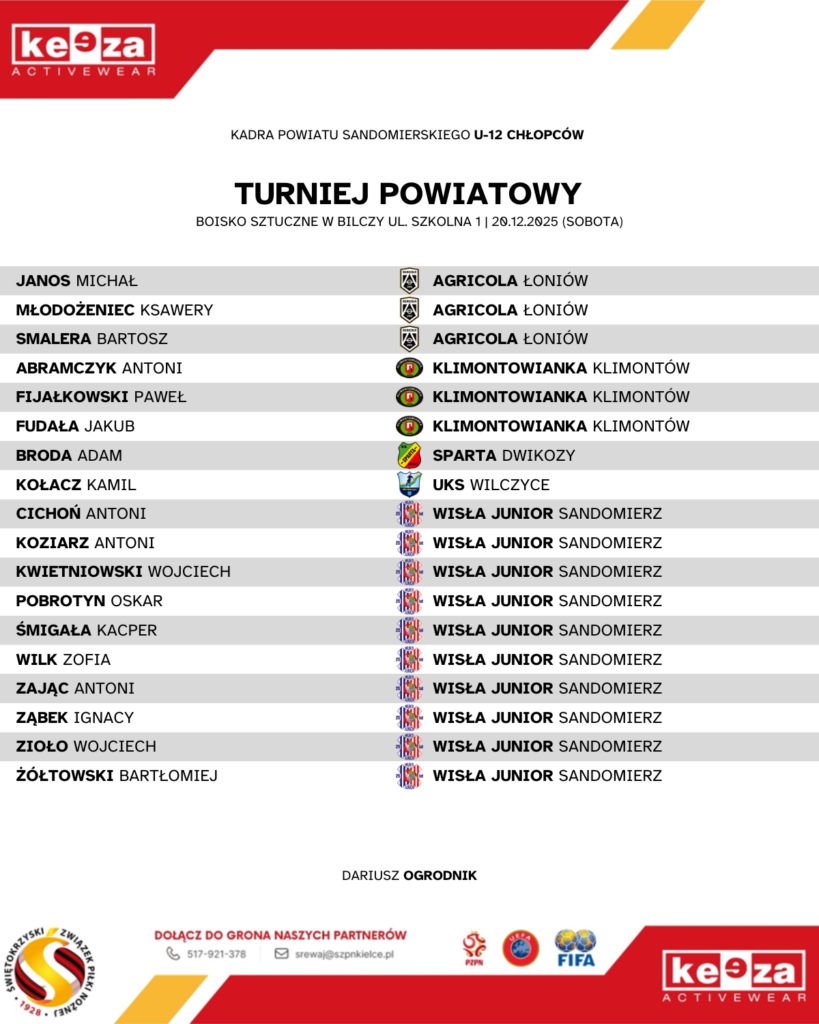 Powołania do kadry powiatu sandomierskiego U-12 chłopców
