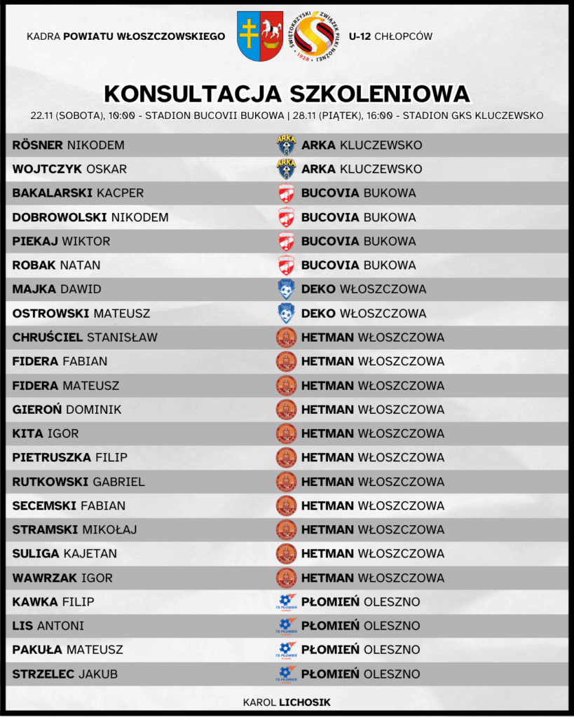 Powołania do kadry powiatu włoszczowskiego U-12 chłopców