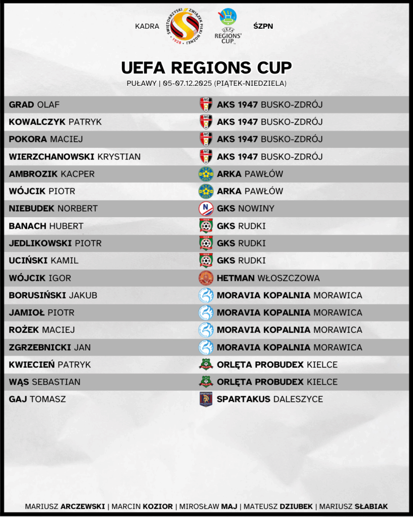 Po kilku latach przerwy ponownie zagramy w UEFA Regions Cup. W dniach 5-7 grudnia 2025 r. reprezentacja naszego województwa weźmie udział w turnieju finałowym makroregionu w Puławach.